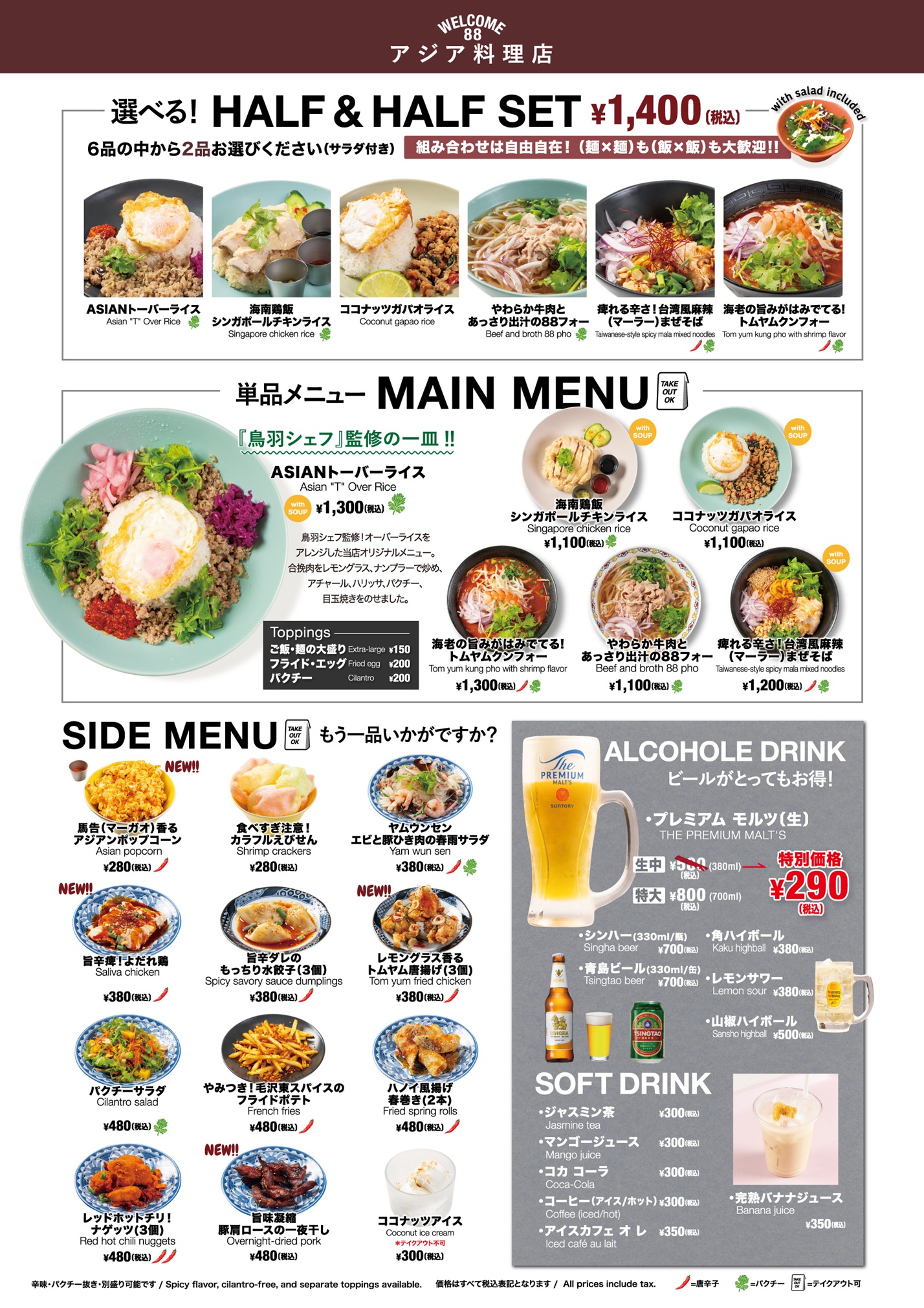 “かよいたくなる、街のアジア料理店。” 『88亞細亞(ハチハチアジア)』FOOD & TIME ISETAN YOKOHAMA店限定でザ・プレミアム・モルツが、なんと終日290円で、時間を気にせず、いつでも気軽に楽しめるようになります。ビールだけでなく、角ハイボールも380円と大変お得になっています!